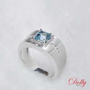 無燒 海水藍寶1.78克拉鑽石戒指-003